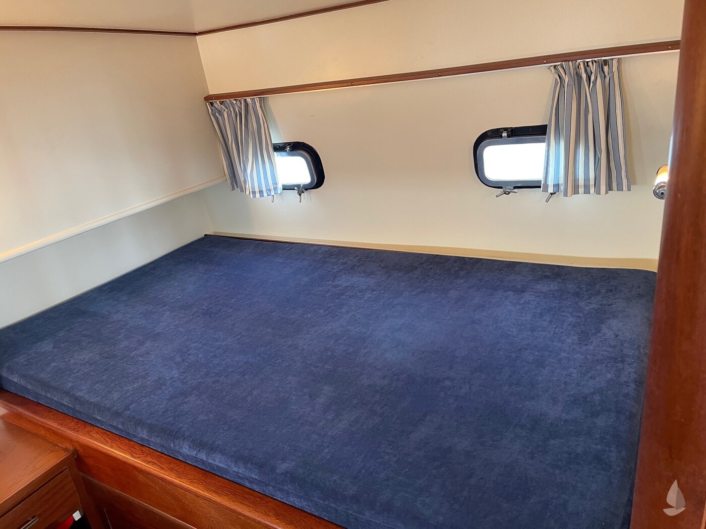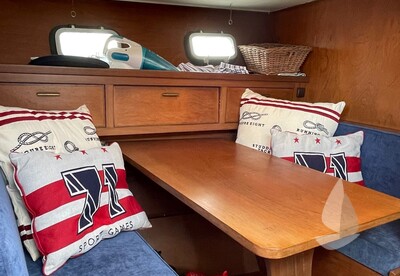 CabinesOwners cabin in aft with 2 large single berths and forward V-shaped cabin with three bunks beds