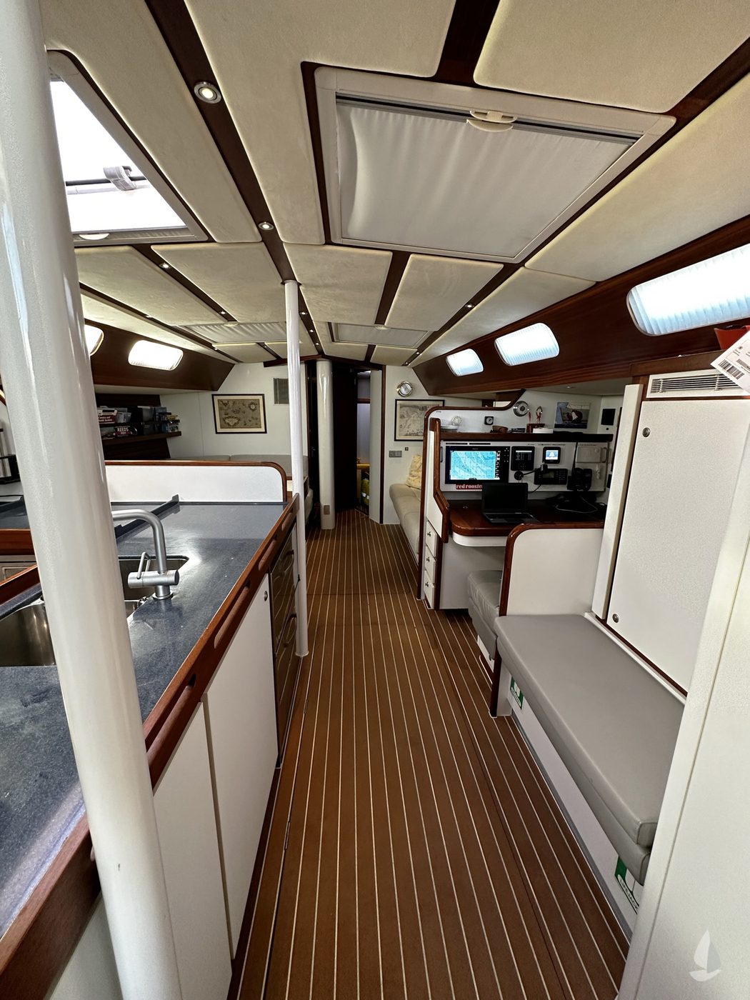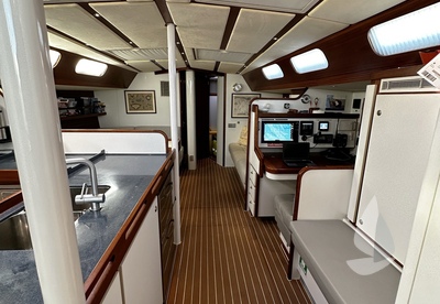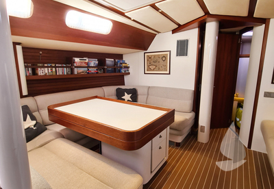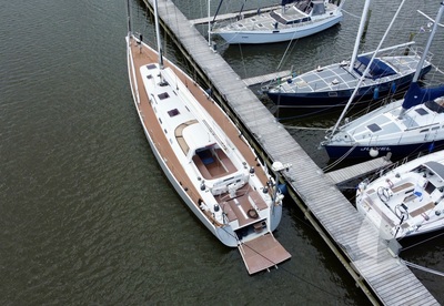 Build me a yacht that offers good sailing performance while being a comfortable passage maker. She should have a spacious interior, a separate accommodation for a crew of two and a considerable number of berths for guests. She is custom built with much input from the owner, an experienced yachtsman. A remarkable feature of this yacht is an extensive pneumatic system for operating
