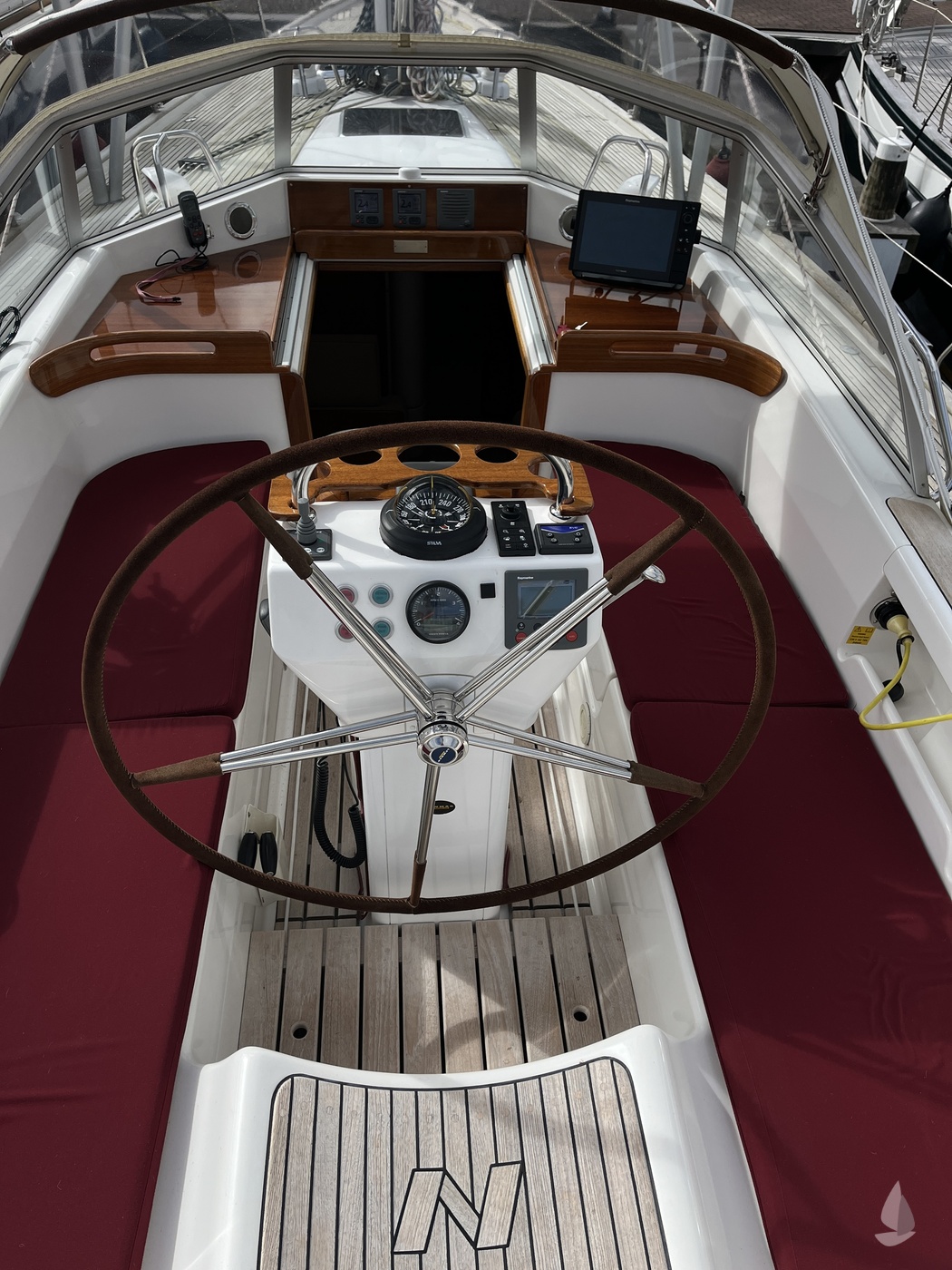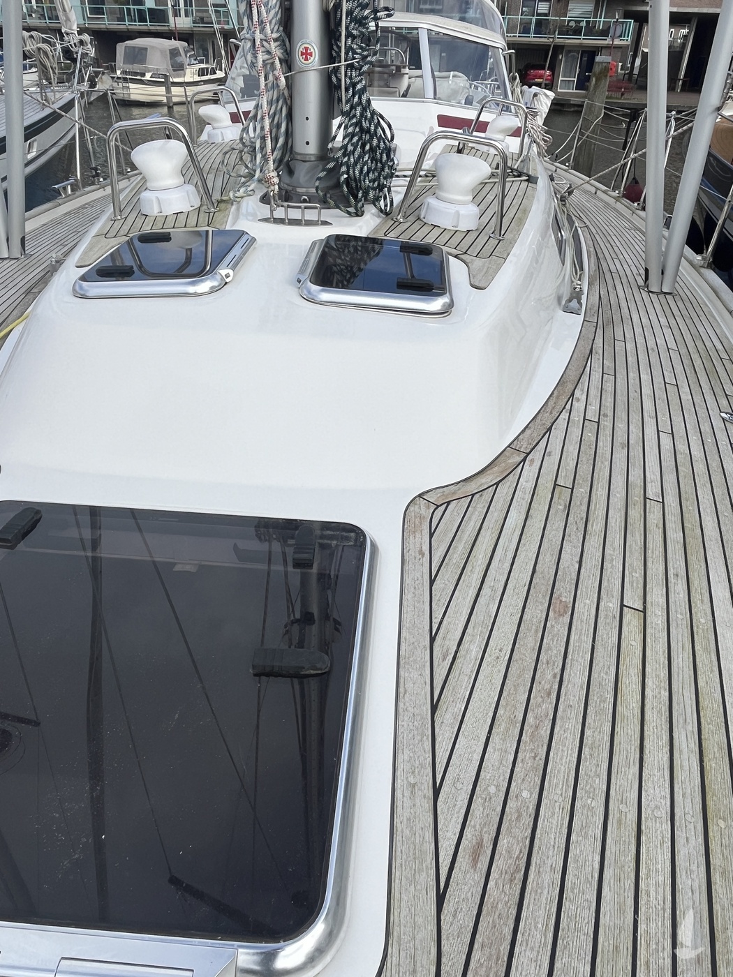 Dek en opbouw materiaalTeak op GRP sandwichconstructie met divinycell kernmateriaal