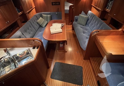 CabinesRuime achterkajuit met tweepersoonsbed en voorkajuit met V-vormig tweepersoonsbed
