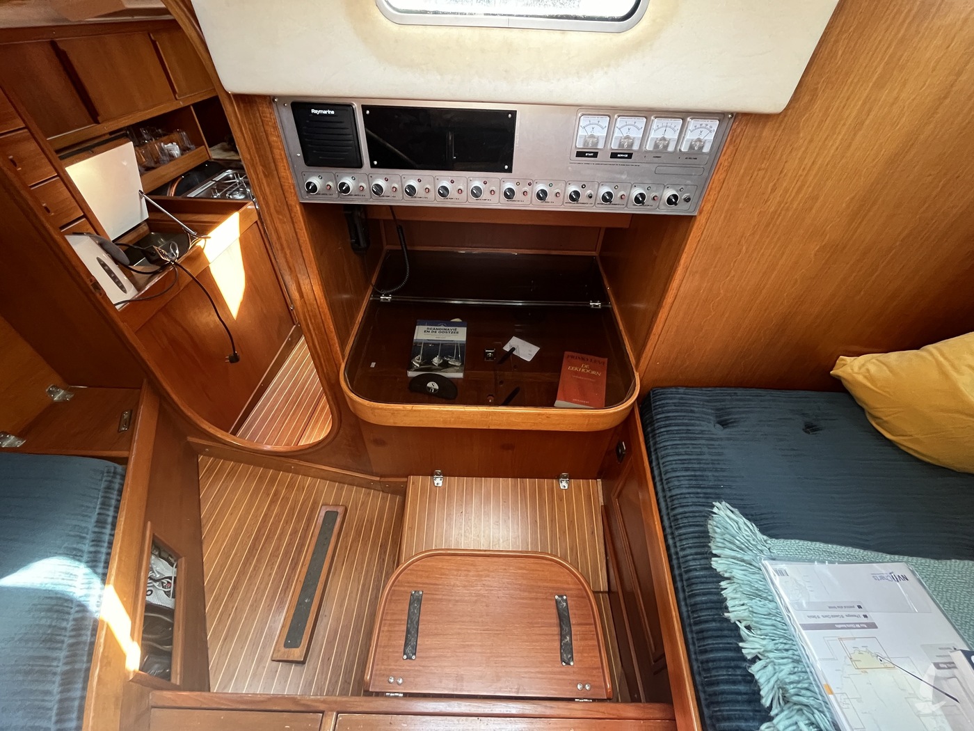 Deze specifieke Jonmeri is regelmatig onderhouden en zorgvuldig geüpgraded, met een nieuwe motor en Flexofold prop (2023), nieuwe Raymarine instrumenten (2021), een nieuwe stuurautomaat (2019), en een opnieuw gespoten cockpit en opbouw (2016).