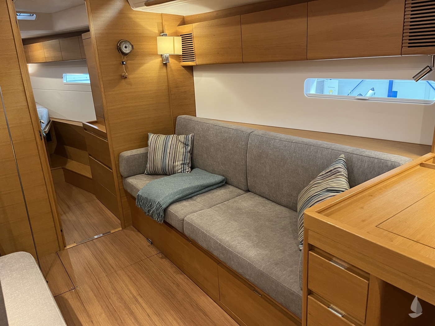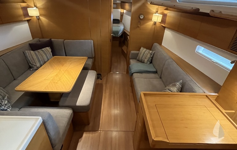 Dek en opbouw materiaalGVK in wit, volledig teak met komende in grijs