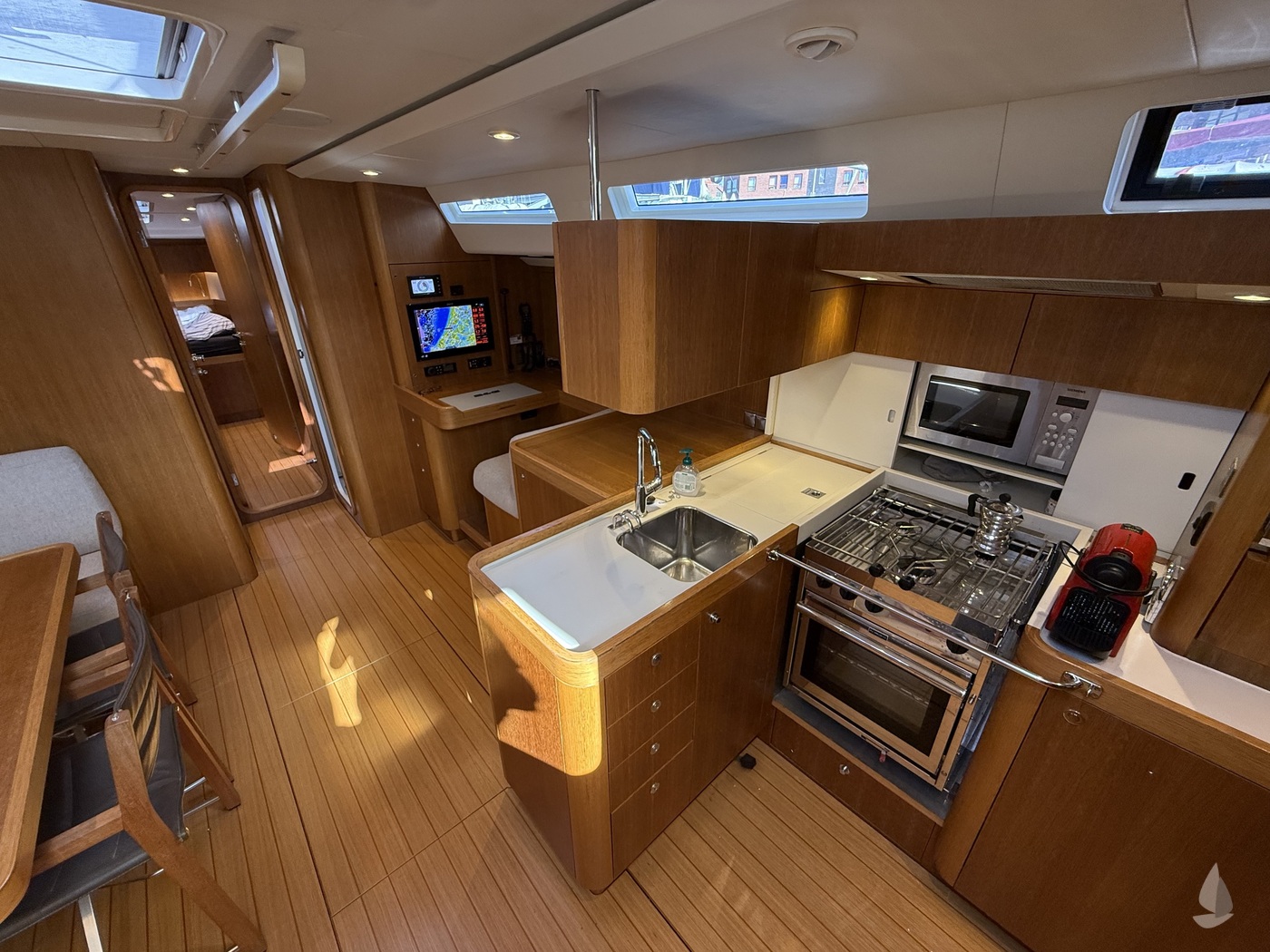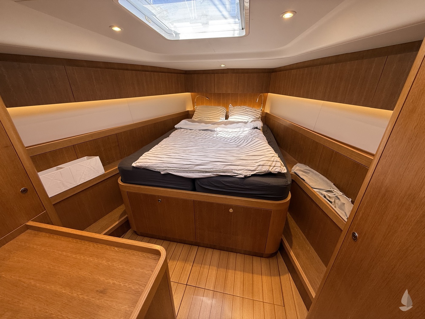 Pau Hana is nu te koop bij haar tweede eigenaar, die haar vorig jaar een complete upgrade en refit heeft gegeven. De werkzaamheden omvatten de installatie van een inboom rolreefsysteem door "Mainfurl", een nieuwe hekschroef, nieuw grootzeil, nieuwe genua en een nieuwe kotter, nieuwe matrassen, nieuwe lithium accu's inclusief een nieuwe lader, nieuwe webasto verwarming en onderhoud van alle belangrijke apparatuur. Er is ongeveer 250.000 euro geïnvesteerd! Dit bevestigt dat ze in een turn-key conditie is en klaar voor haar volgende avonturen. Facturen beschikbaar.
