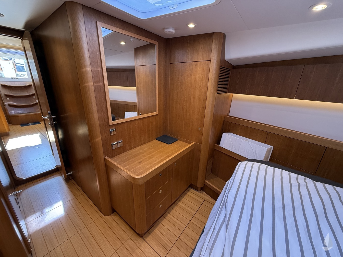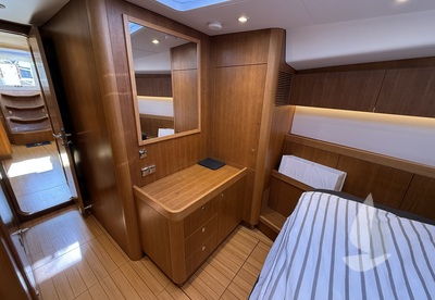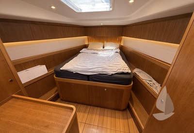 Haar specificatie omvat een rolgrootzeil, nieuwe zeilen en boeg- en hekschroeven. De indeling van het interieur biedt drie hutten plus een aparte hut voor de bemanning, met twee toiletten, wat flexibiliteit biedt voor zowel privé cruisen als langere reizen met gasten of bemanning.